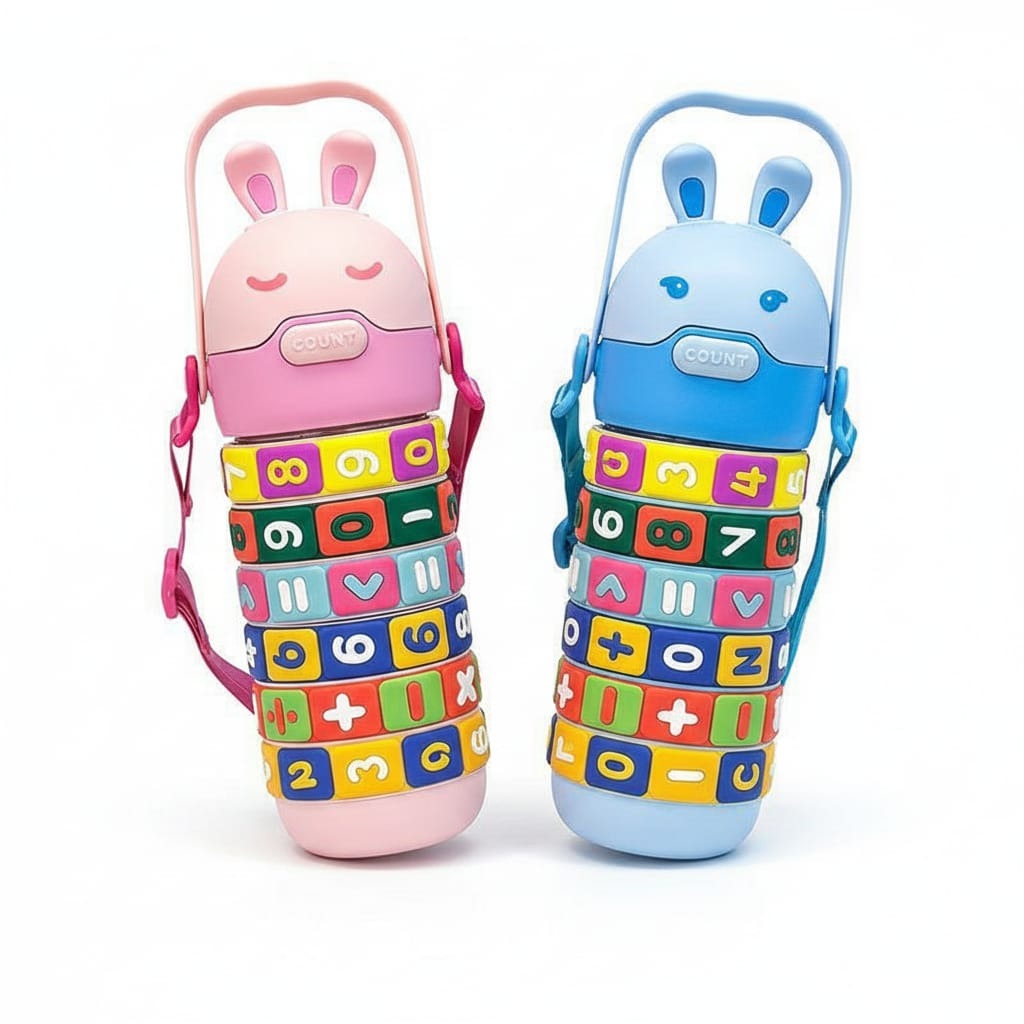 Adorable bunny-themed kids water bottle available in multiple colours