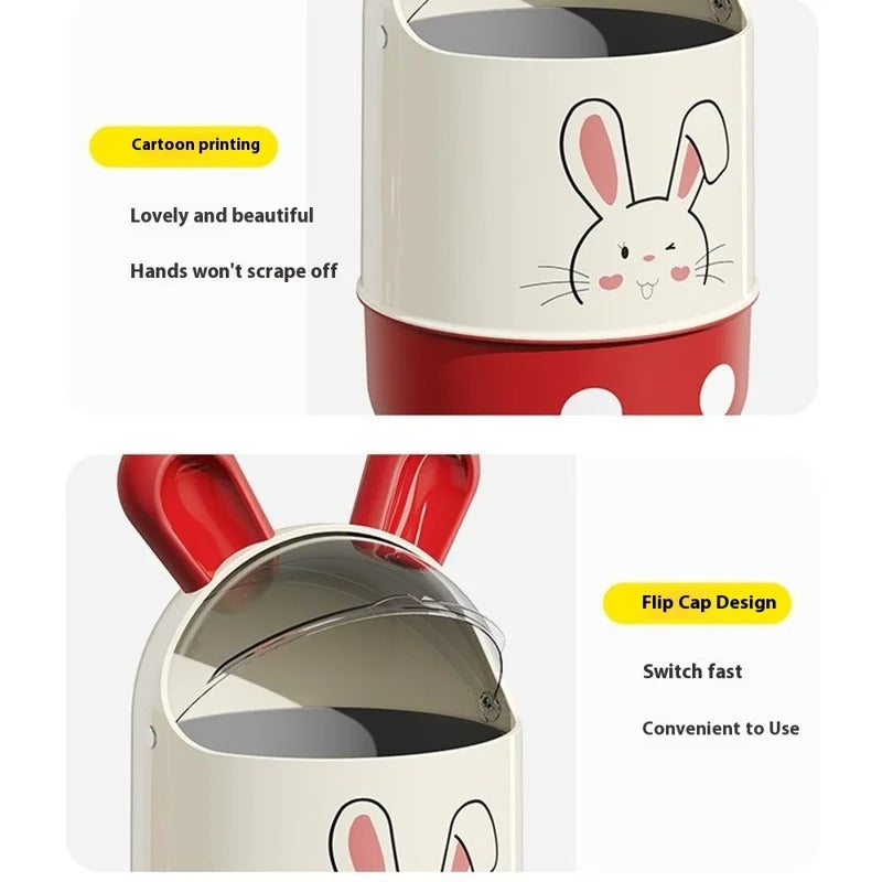 Cute Rabbit Ears Design Trash Can with Flip Lid for Living Room Bathroom Waste Bin