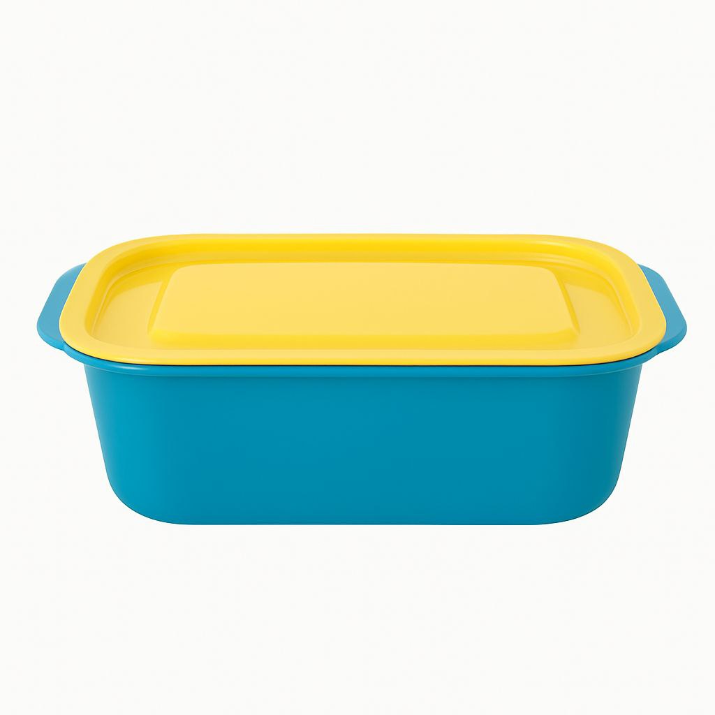 Keep your food fresh and your kitchen organized with this stylish rectangular plastic storage container, featuring a vibrant blue base and secure yellow lid. Perfect for meal prep, leftovers, dry storage, or fridge organization, this container combines functionality with a modern look.