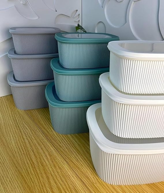 Design & Material: The containers are rectangular and feature a distinctive ribbed/fluted texture on the exterior of the base. This design often adds structural integrity and makes the container easier to grip. They are typically made from BPA-free Polypropylene (PP) plastic, which is durable and often freezer, microwave, and dishwasher safe.
