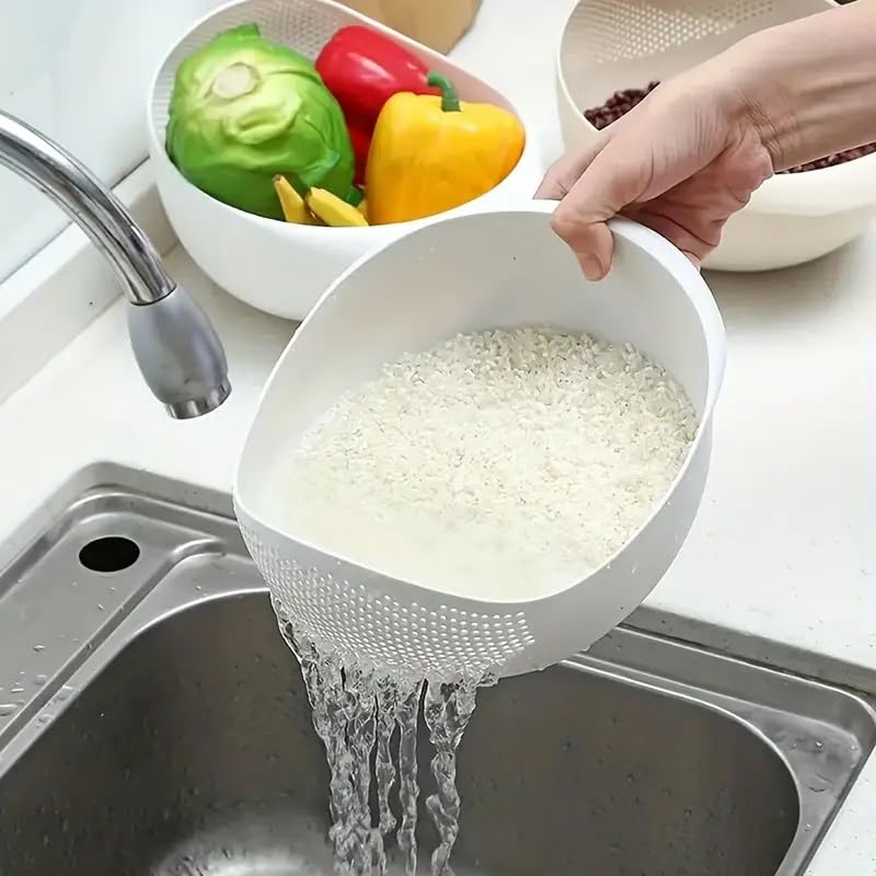 The White Plastic Rice Food Strainer is a versatile kitchen tool designed for straining, rinsing, and sifting various food items. Made from BPA-free plastic, it ensures safety and hygiene while being easy to clean. With a trendy design and lightweight construction, this strainer is perfect for everyday cooking and outdoor activities.