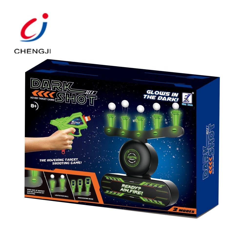 Core Mechanic: The target base contains a blower mechanism that pushes air up through five green pillars (fixators), causing lightweight Styrofoam balls to float in mid-air. This creates dynamic, moving targets for an extra challenge.