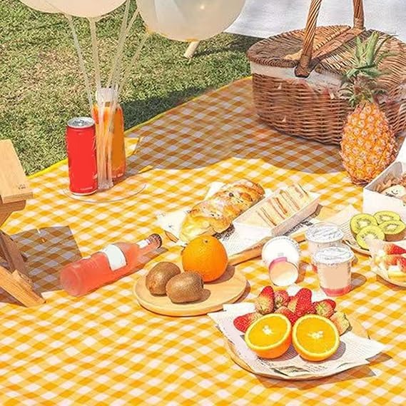 Yellow-Checked-Foldable-Picnic-Mat-Portable-Outdoor-Blanket